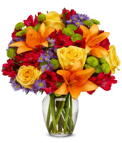 The flowers were vibrant and fresh. The arrangement was beautifully done, and the delivery was on time. Very happy with my purchase.